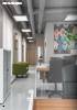 Для менеджеров по продажам было спроектировано пространство по типу openspace. На первом этаже здания в ближайшее время появится кафе в формате take away, предназначенное не только для сотрудников офиса, но и для всех желающих. Интерьер получился деловым, лаконичным и нескучным. Минималистичным и даже аскетичным, с монохромным решением общего пространства в серых тонах. Простые отделочные материалы, преимущественно необработанные, с грубой фактурой – бетон, дерево, штукатурка – позволили создать правильный и выигрышный фон для работ современных художников, давнего увлечения руководителя компании. Грамотно подобранные для каждого помещения репродукции не только украсили офис, сделав его ярче и выразительнее, но и помогли создать пространство, где архитектура следует за искусством.