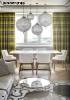 желании можно и уединиться. Такой же портал симметрично выделяет и зону кухни. Ровно посередине в нем выстроен объемный блок, на котором со стороны гостиной смонтирован домашний кинотеатр, а с другой – встроена кухонная техника. Цветовая и фактурная гамма интерьера продиктована белой облицовочной плиткой, которая к моменту прихода дизайнеров была уже закуплена, поэтому им пришлось отталкиваться в своих решениях от нее. В результате все стены выкрасили в сложный серовато-зеленый тон, объединив цветом пространство дома, на пол «елочкой» уложили массивную доску. Исключение по цвету сделали для спальни, она стала серо-бежевой. Чтобы квартира в стиле современной классики не стала скучновато монохромной, добавили необычные стеклянные и хрустальные светильники и яркие пятна текстиля. Получился интерьер для двоих – камерный и благородный.